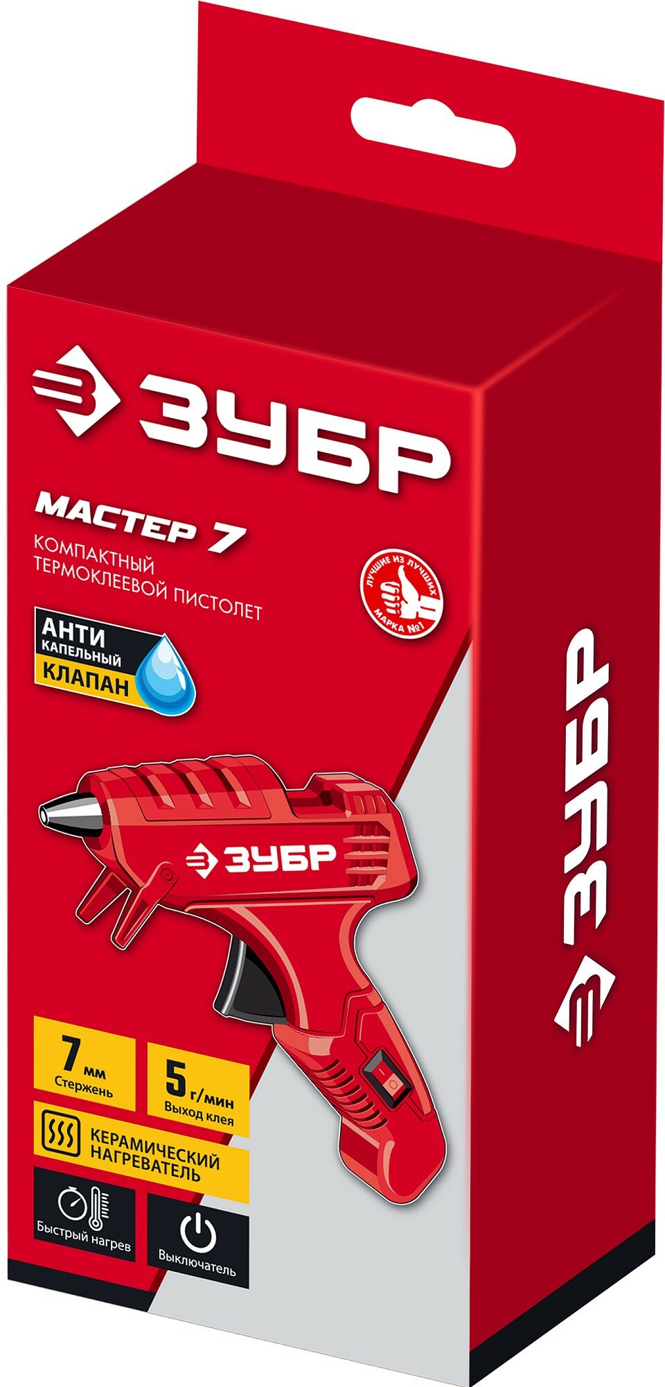 ЗУБР Мастер 7 Электрический термоклеевой пистолет d7 мм, выход клея 5 г/мин (06851-7)