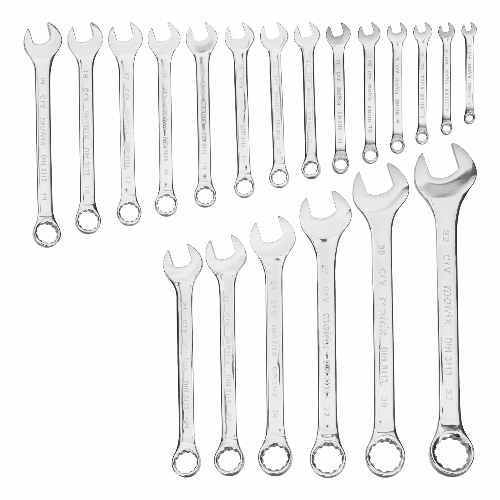 Набор ключей комбинированных 6-32 мм, 20 шт, CrV, полированный хром Matrix (15441)