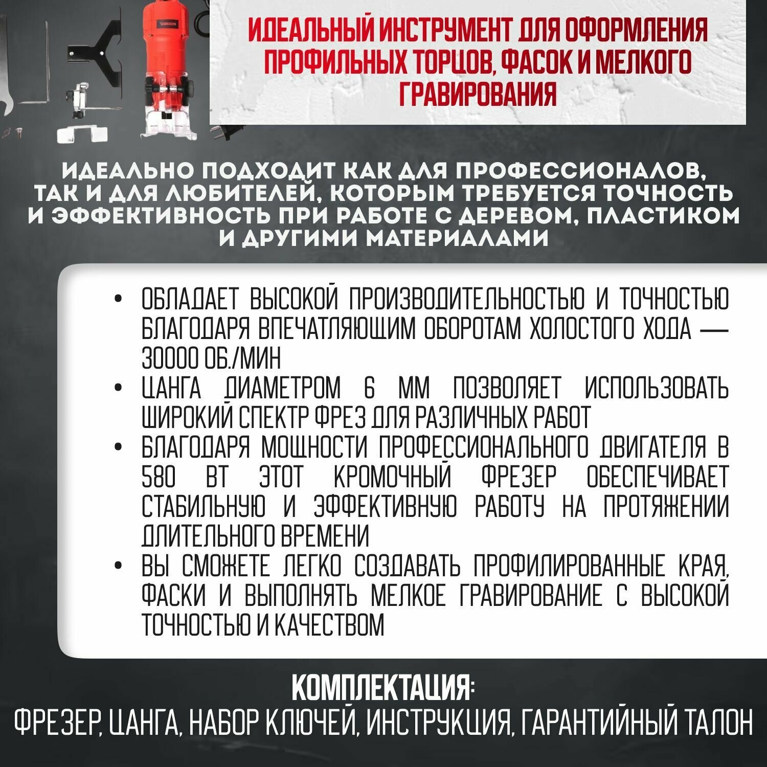 Кромочный фрезер RODEO LT0600, 580 Вт, цанга 6 мм, 30000 об./мин