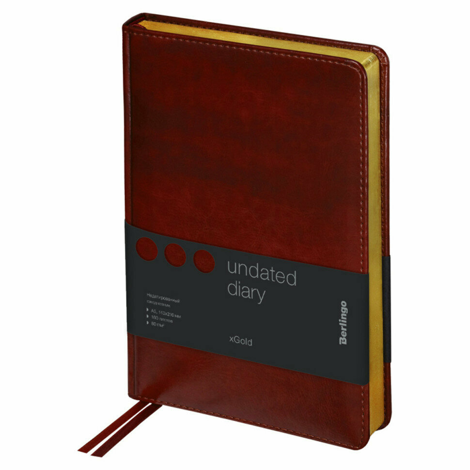 Ежедневник недатированный Berlingo A5, 160 листов, кожзам, "xGold", золотой срез, бордовый (UD0_81504)