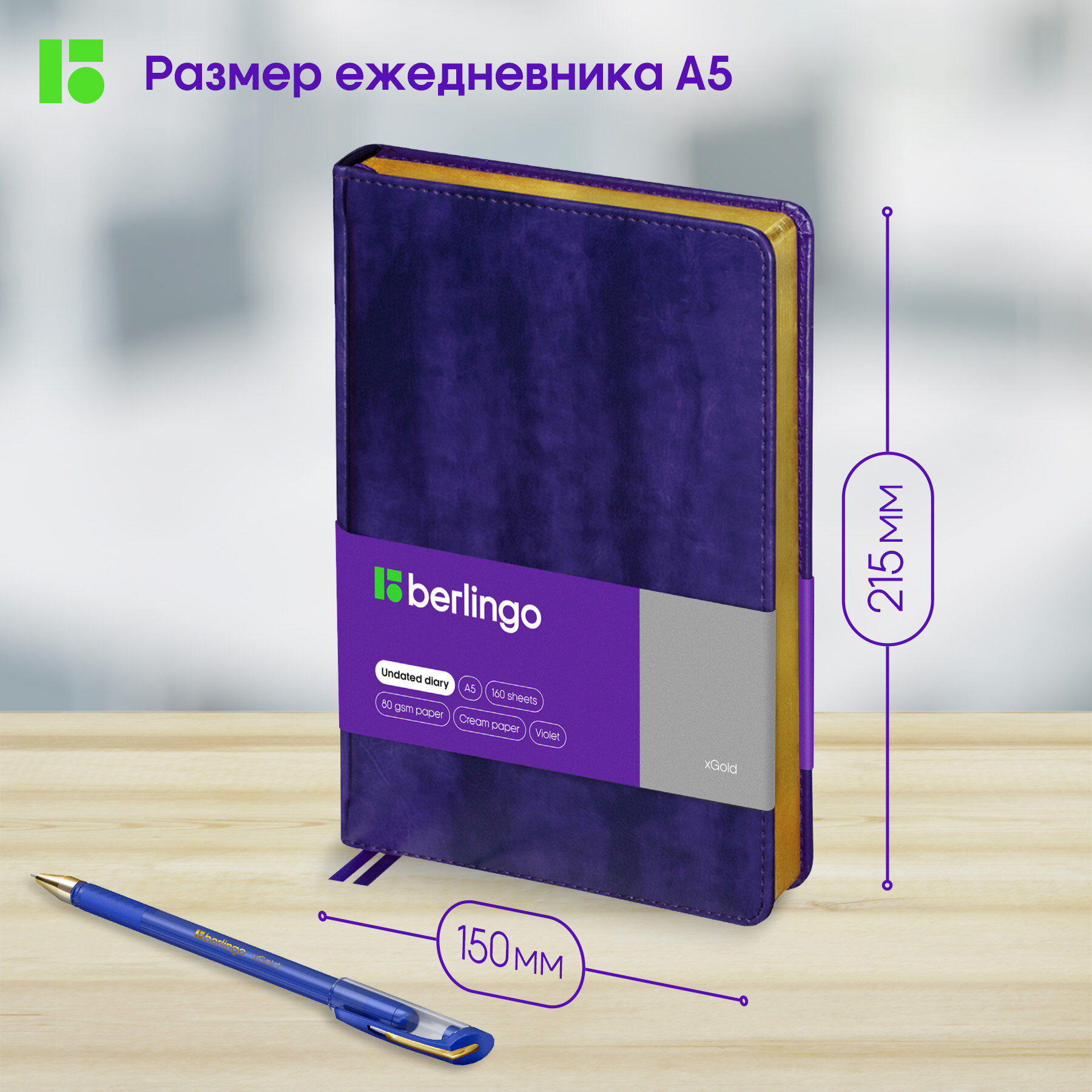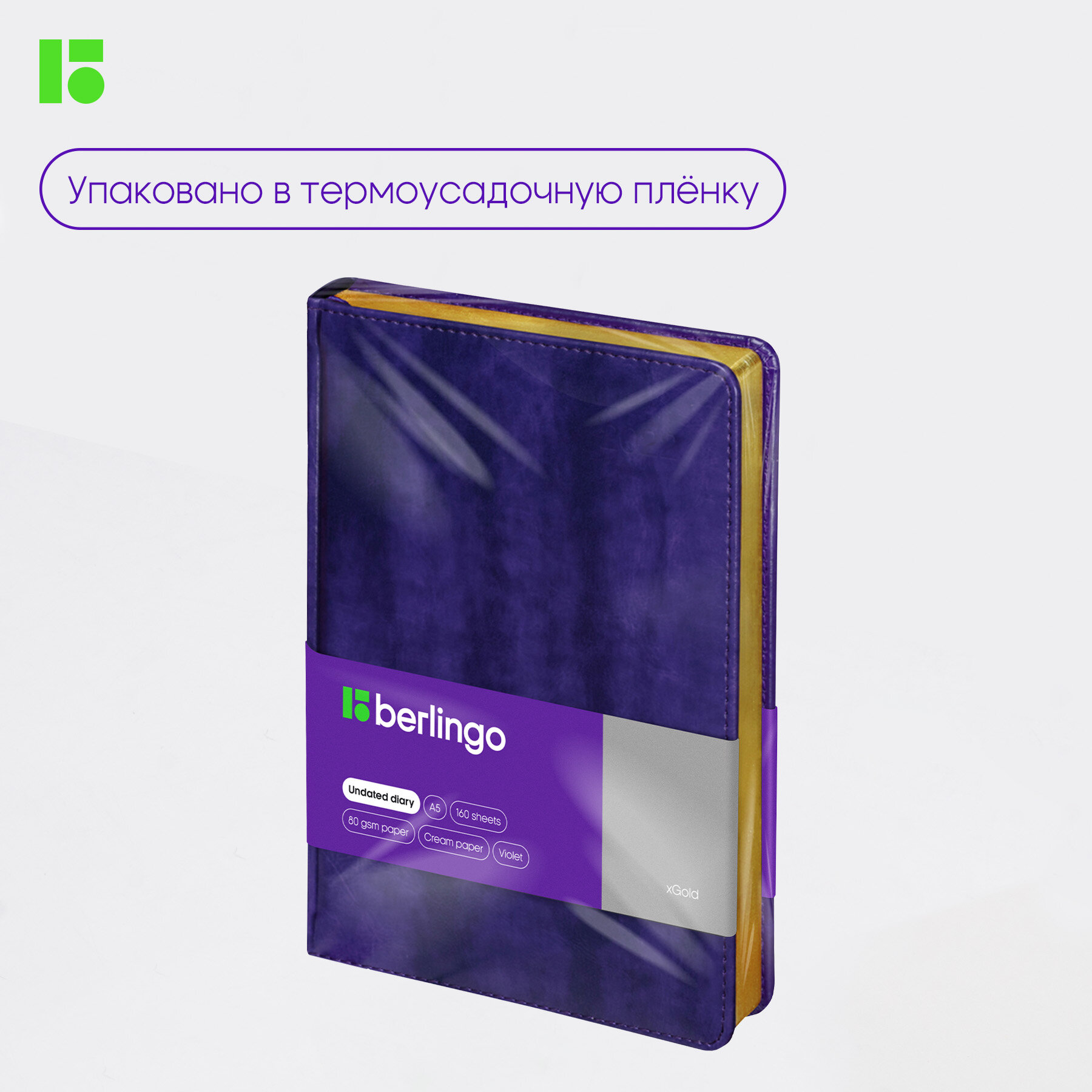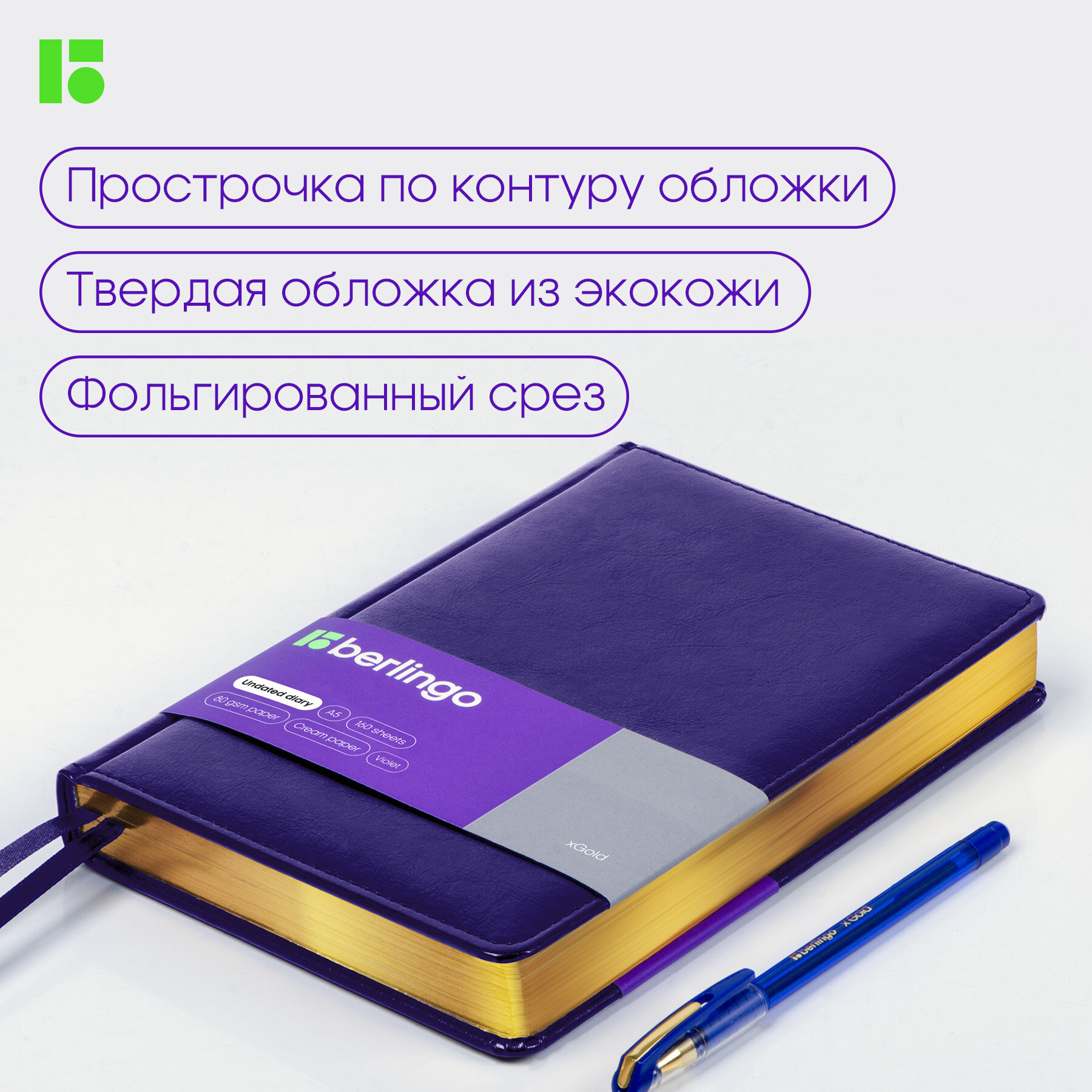 Купить Ежедневник недатированный Berlingo A5, 160 листов, кожзам, "xGold", золотой срез, фиолетовый (UD0_81507)