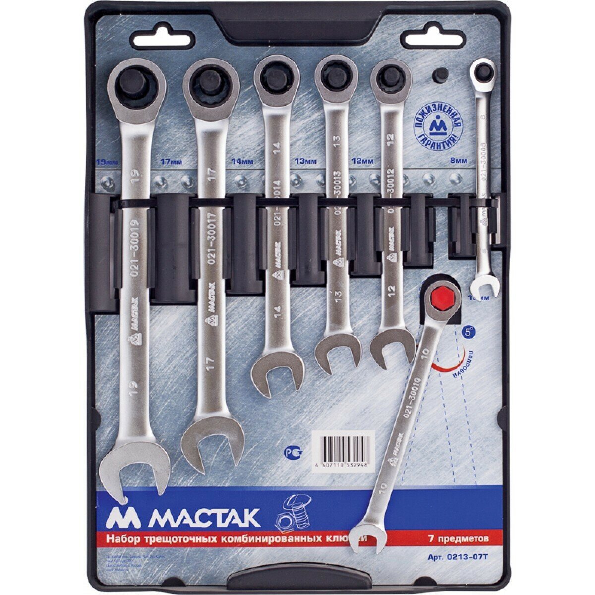 0213-07T мастак Набор комбинированных трещоточных ключей, 8-19 мм, 7 предметов 0213-07T