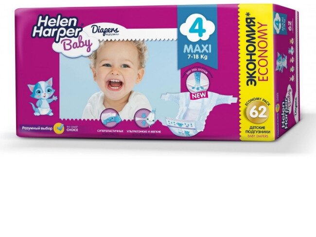 Купить Helen Harper подгузники Baby 4 (9-14 кг), 62 шт.