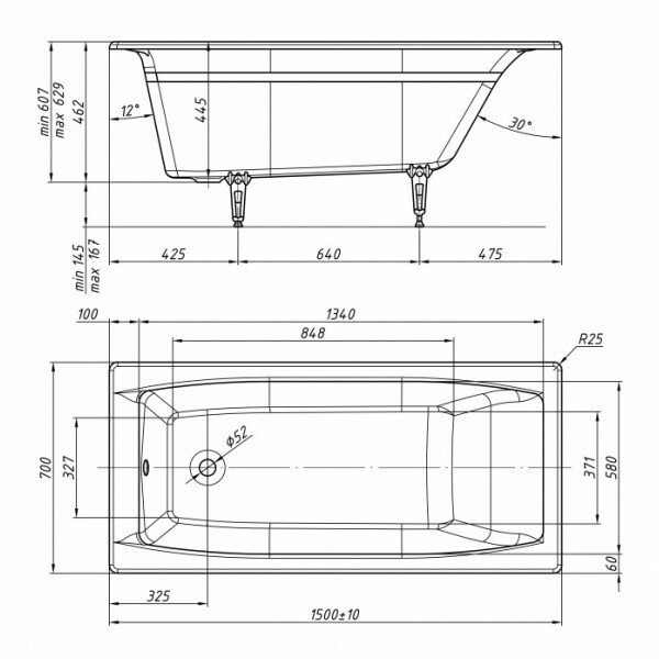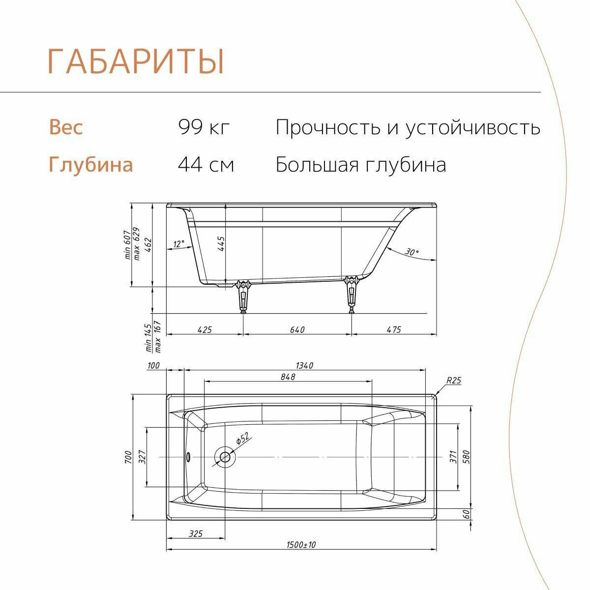 Ванна чугунная tempra Supreme 150x70 круглые ручки интересное: