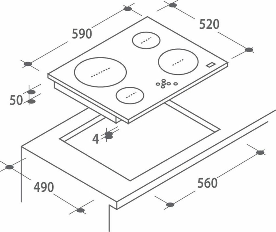 | Размеры конфорок | ближняя левая зона нагрева 15.5 см, дальняя левая зона нагрева 22 см, дальняя правая зона нагрева 19 см, ближняя правая зона нагрева 15.5 см |
