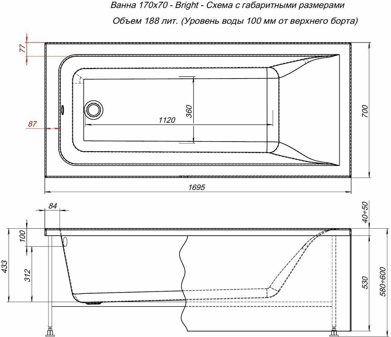 Акриловая ванна Aquanet Bright 170x70 (с каркасом) 00267835 интересное: