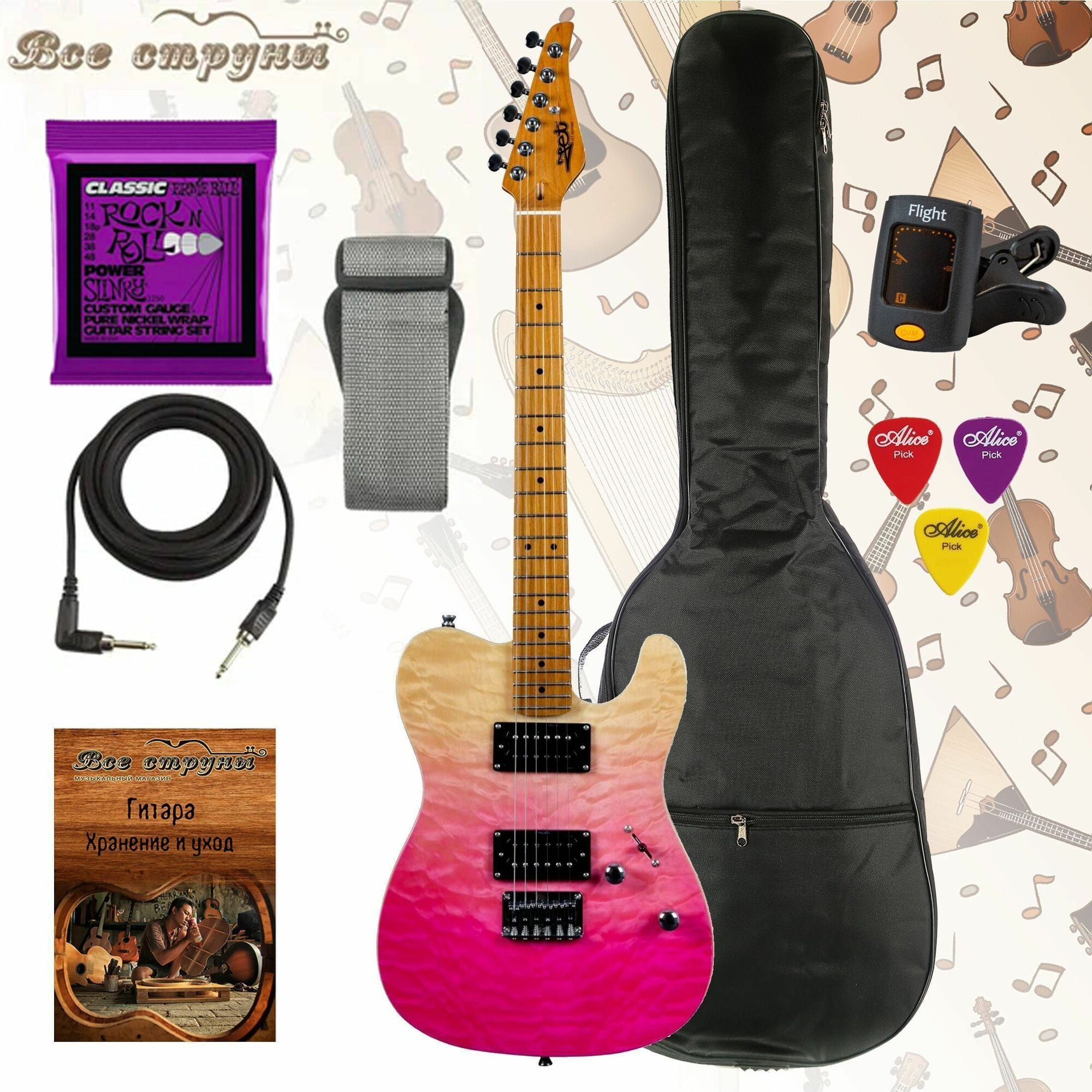 JET JT-450 QTPK электрогитара, Telecaster, корпус липа, топ тигровый клен, цвет PK