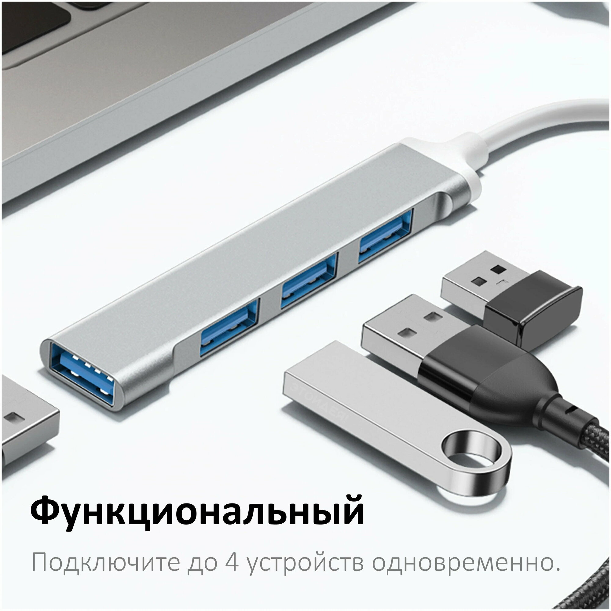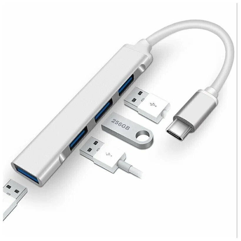 Переходник с Type-C на 4 USB (3.0 и 2.0), OTG, серебристый / хаб для MacBook, ноутбука, смартфона, планшета , серебристый интересное: