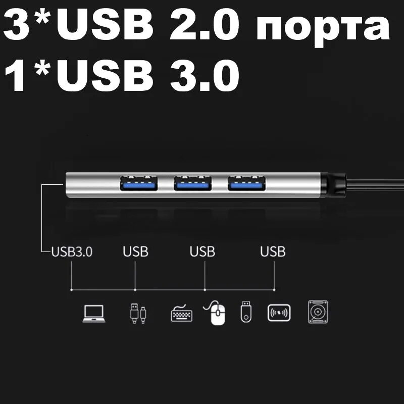 Переходник с Type-C на 4 USB (3.0 и 2.0), OTG, серебристый / хаб для MacBook, ноутбука, смартфона, планшета, серый интересное: