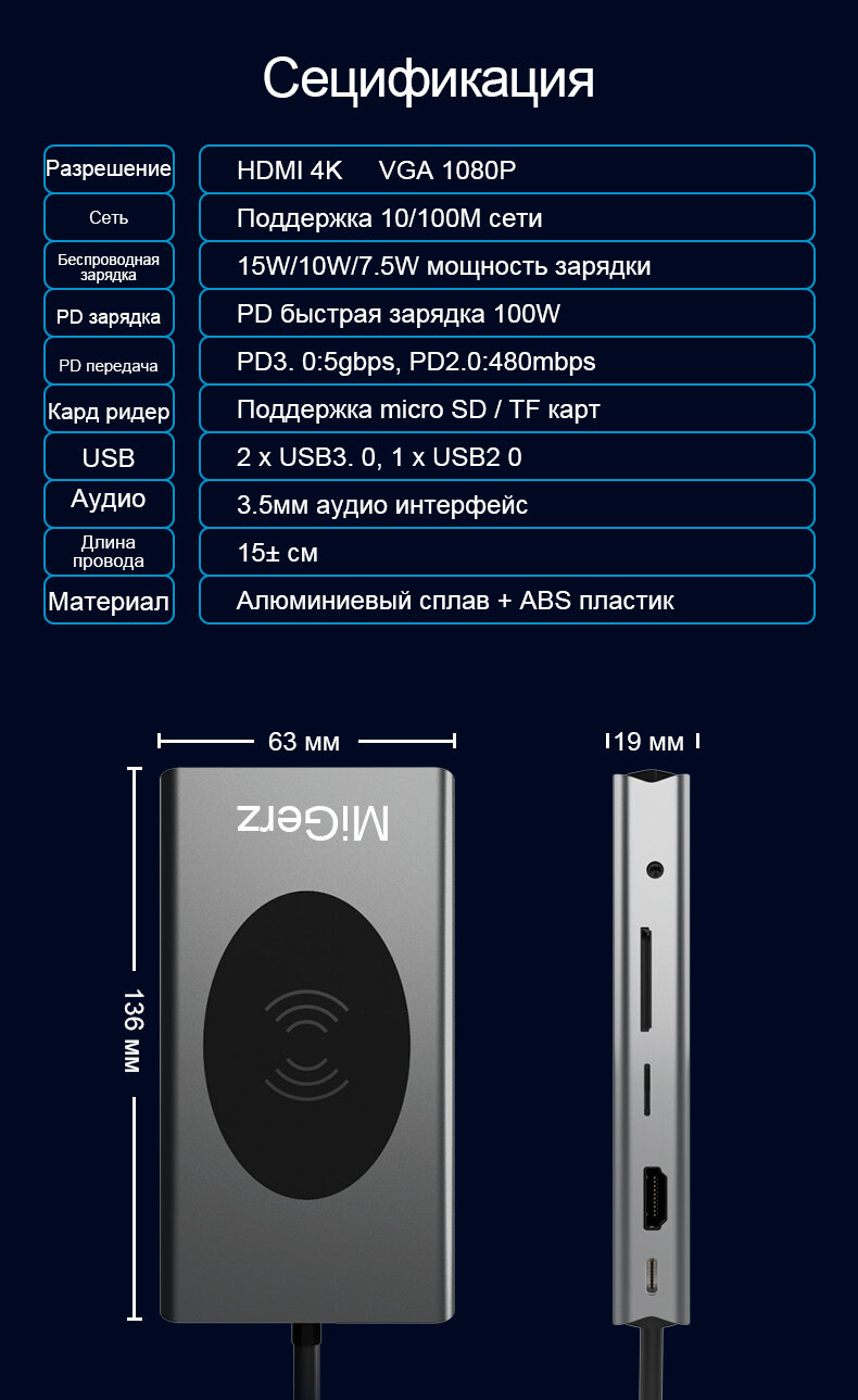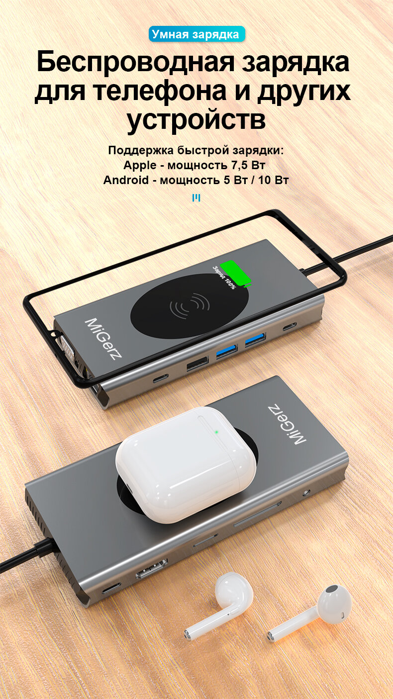 Переходник разветвитель хаб USB Type-C 13 в 1 интересное:
