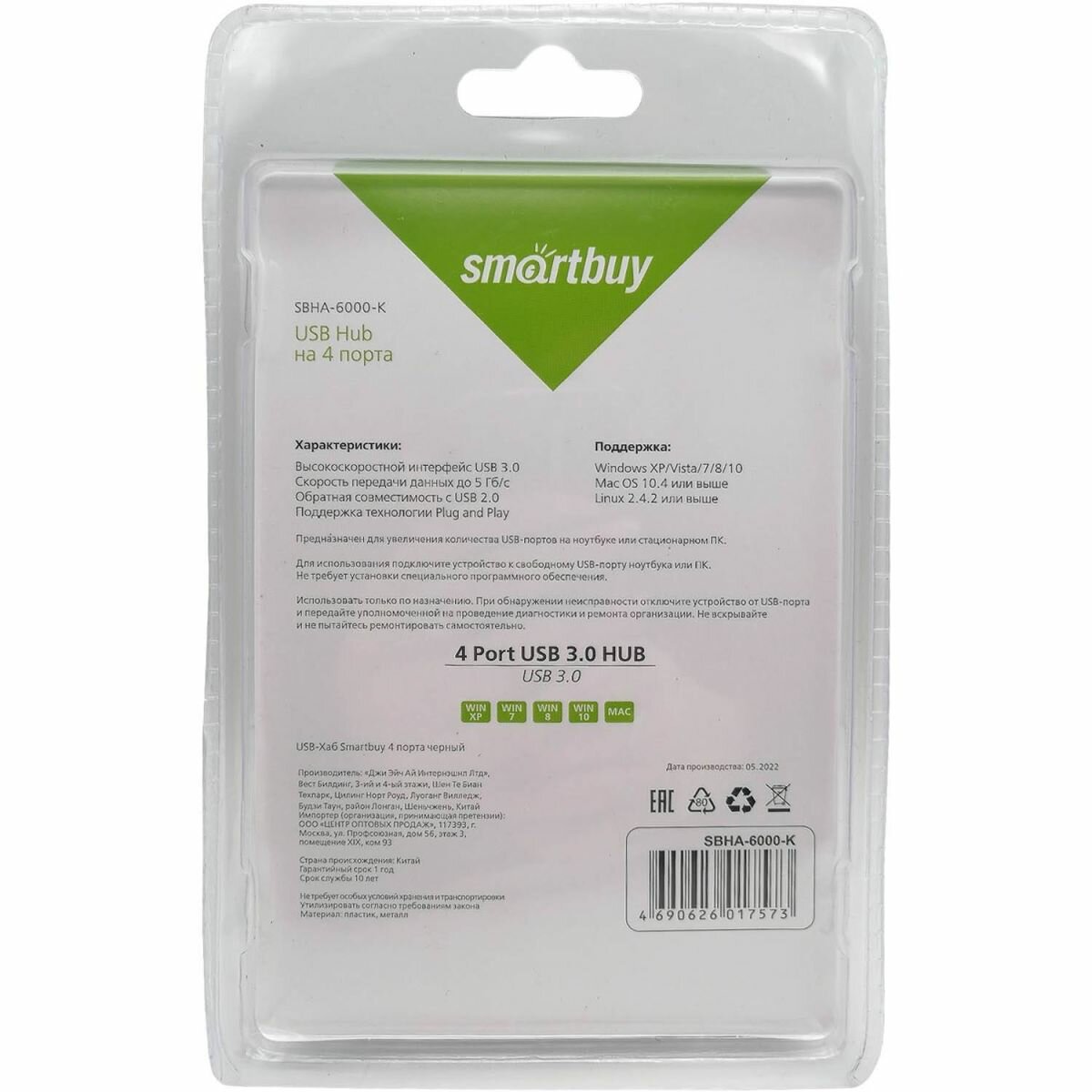 a USB Hub SBHA-6000-K, Black, 4 порта,USB 3.0 SmartBuy интересное: