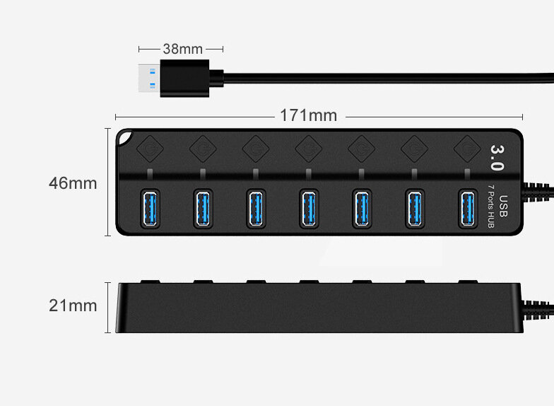 USB 3.0 Hub 7-портовый высокоскоростной / USB-разветвитель / провод 1,2 метра интересное: