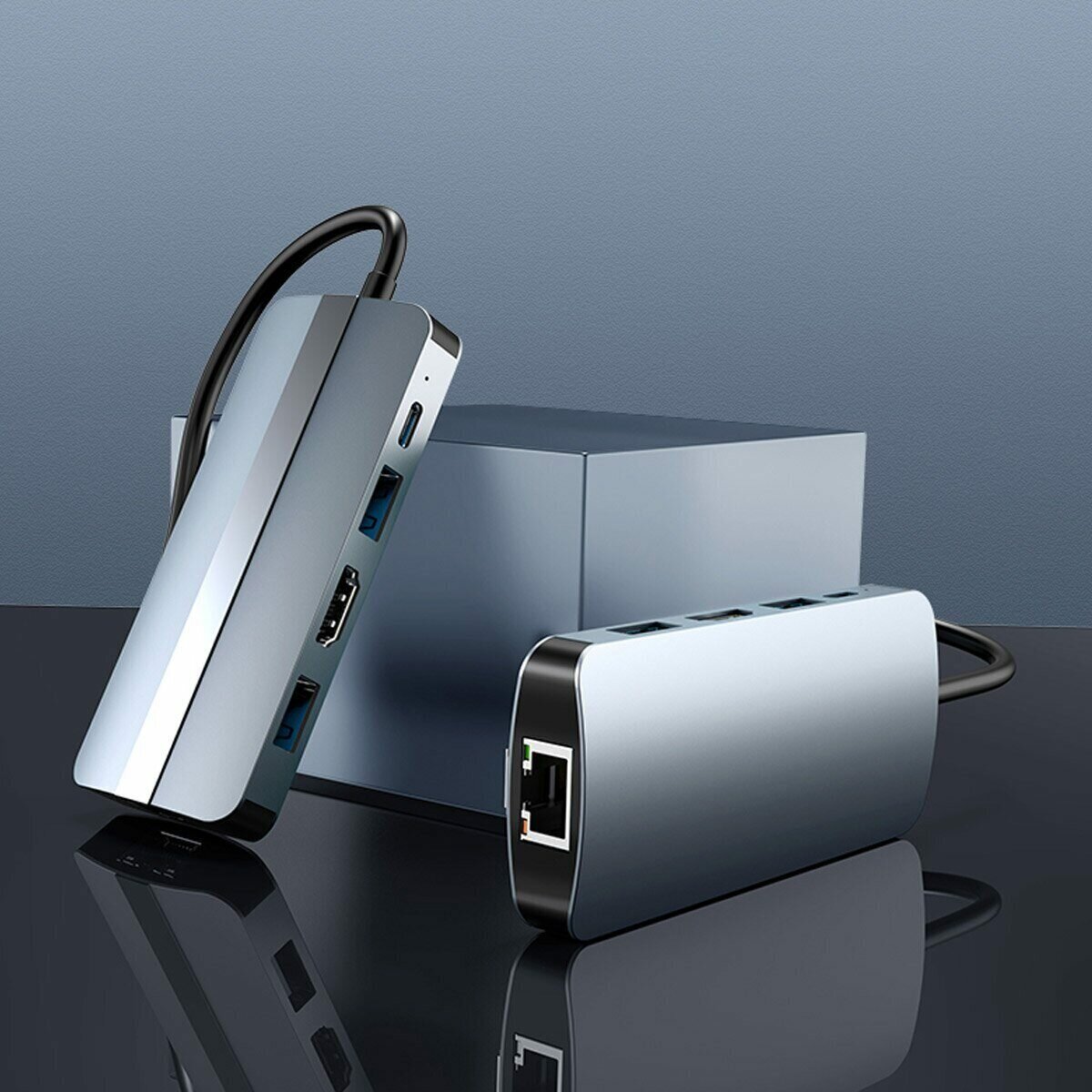 Купить USB HUB разветвитель 9в1Type-C Adapter Type-C to PDх1+HDMIх1+USB2.0х2+USB3.0х1+USB-Cх1+SDх1+TFх1+LANх1 Mivo MH-9011