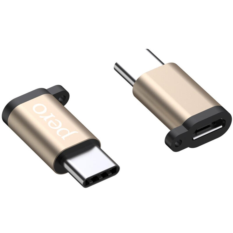 Адаптер PERO AD01, Type-C - microUSB, металл, золотистый