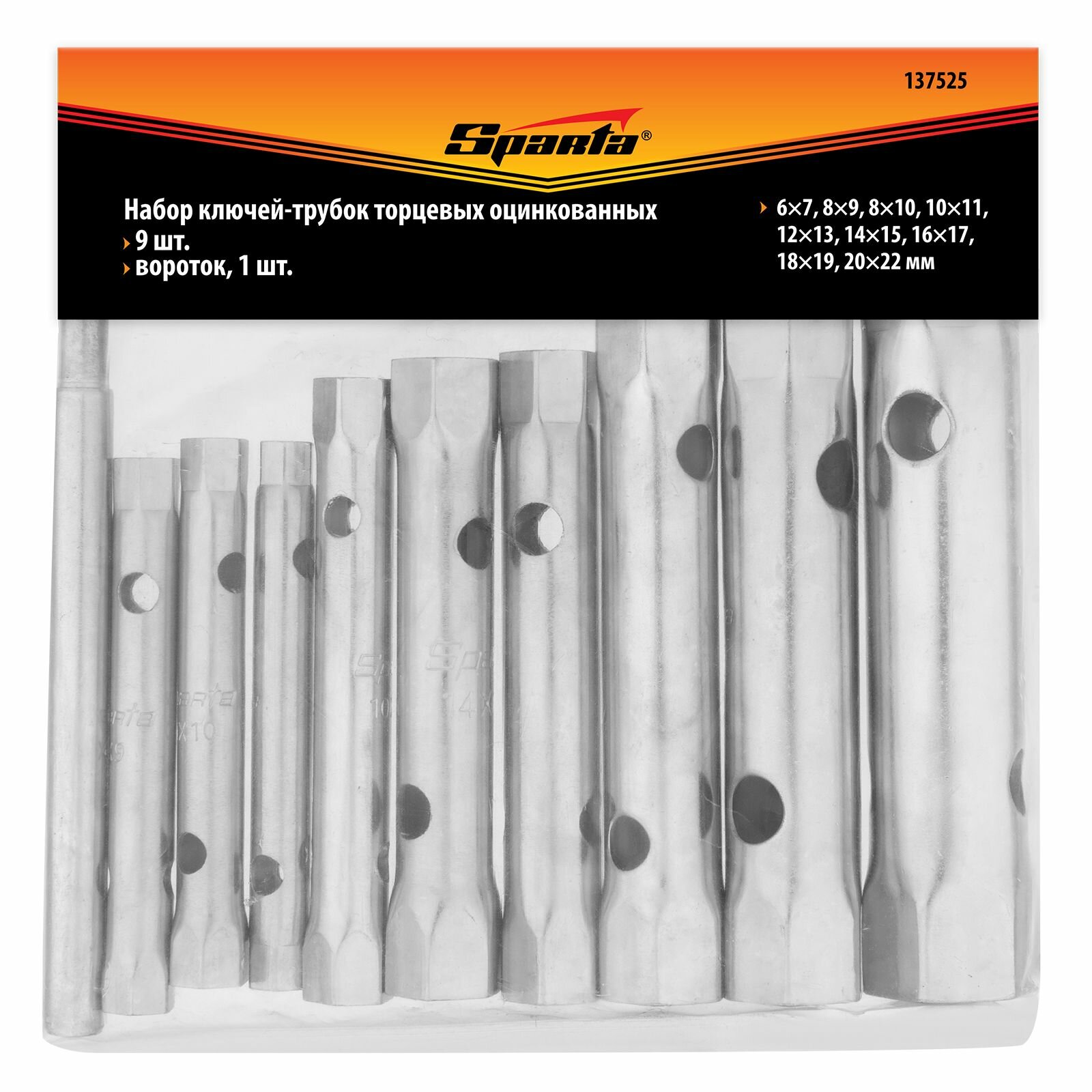 Набор ключей трубчатых SPARTA 137525 торцевых, 6 - 22 мм, вороток, оцинкованные, 9 шт.