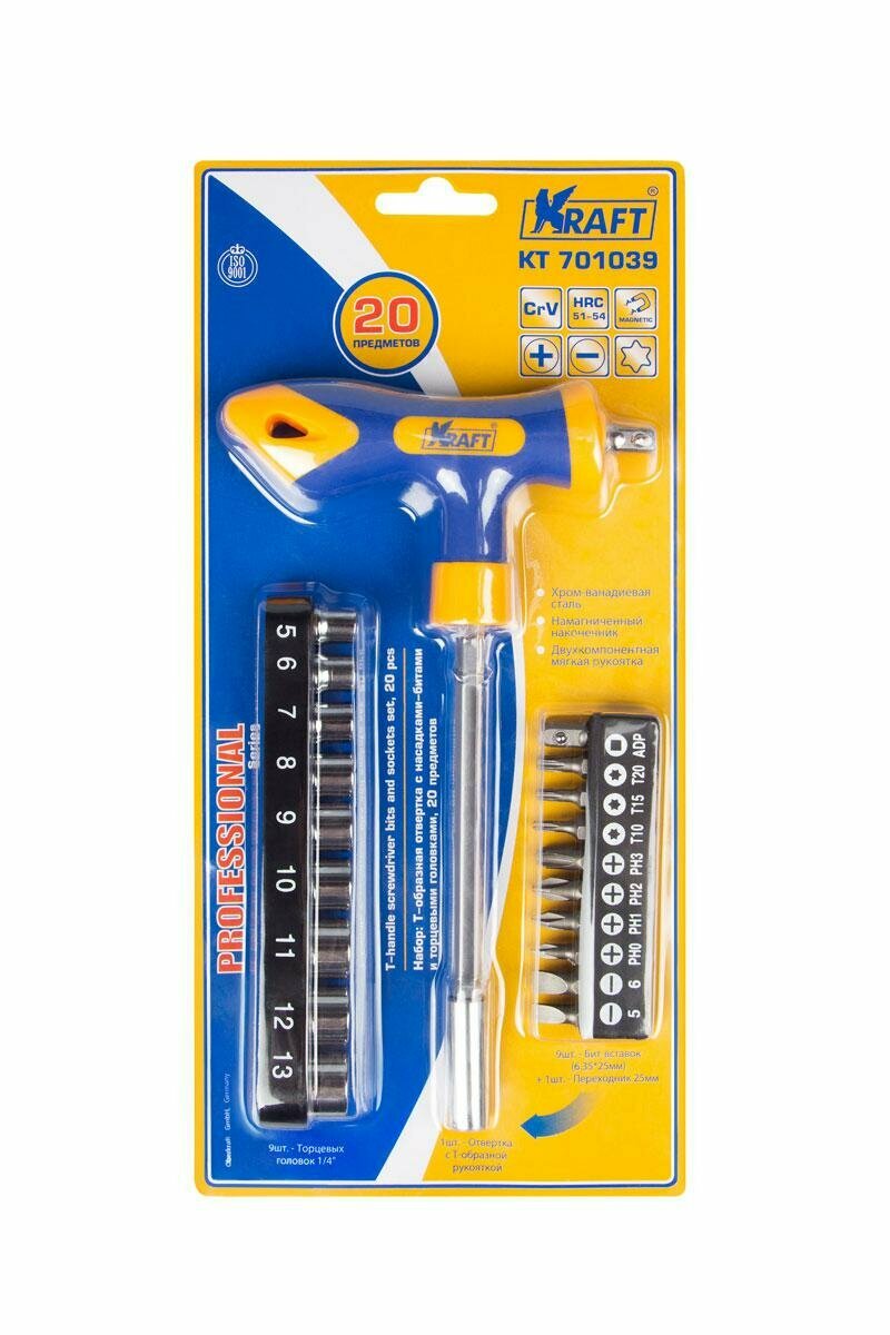 KRAFT KT 701039 Набор Т-образная отверт, с нас,бит, и т,гол 20 пр KRAFT KT 701039
