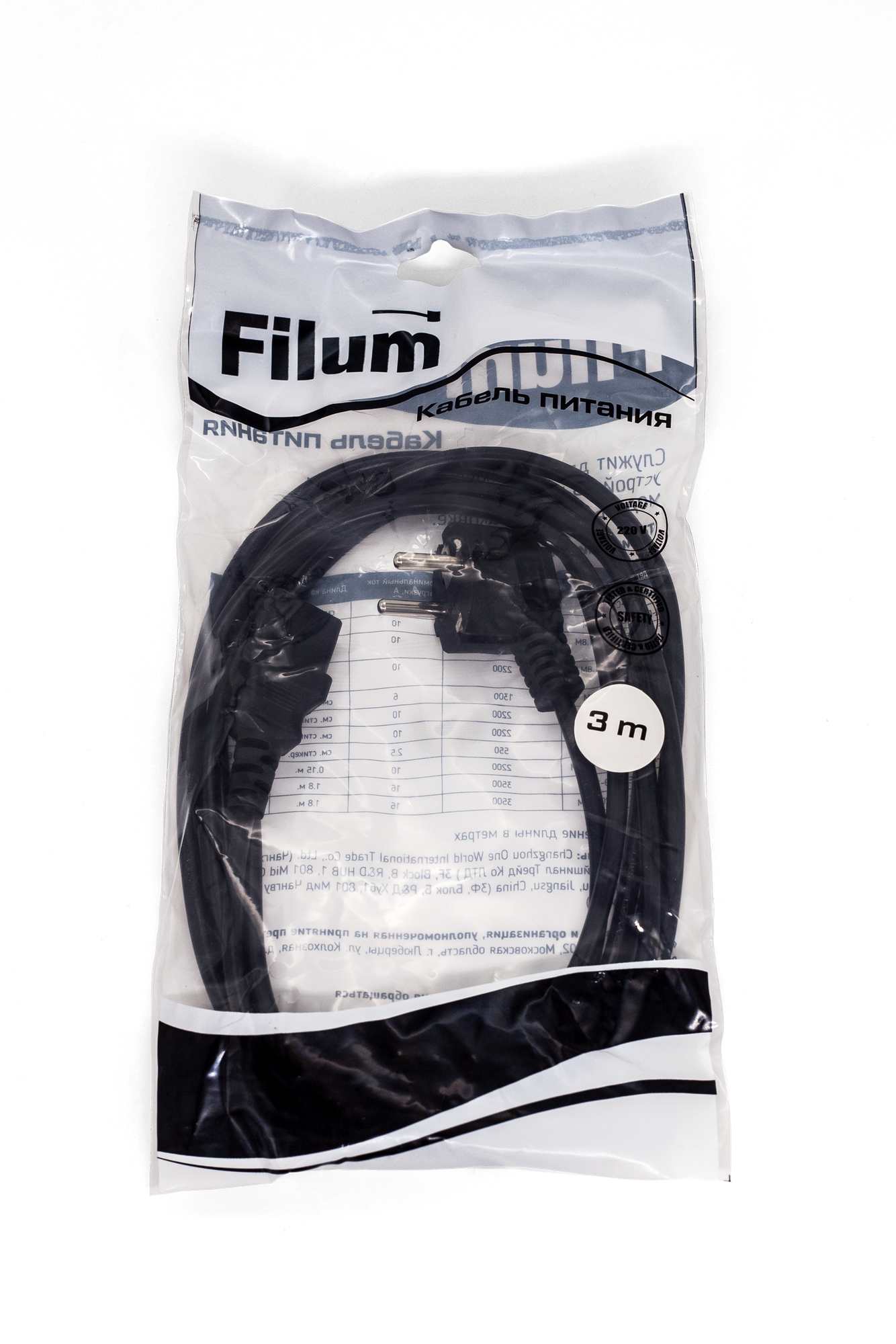 Кабель питания FILUM CEE 7/7- С13, 3х0.75мм, 220В, 10A, чёрный, 1.8м