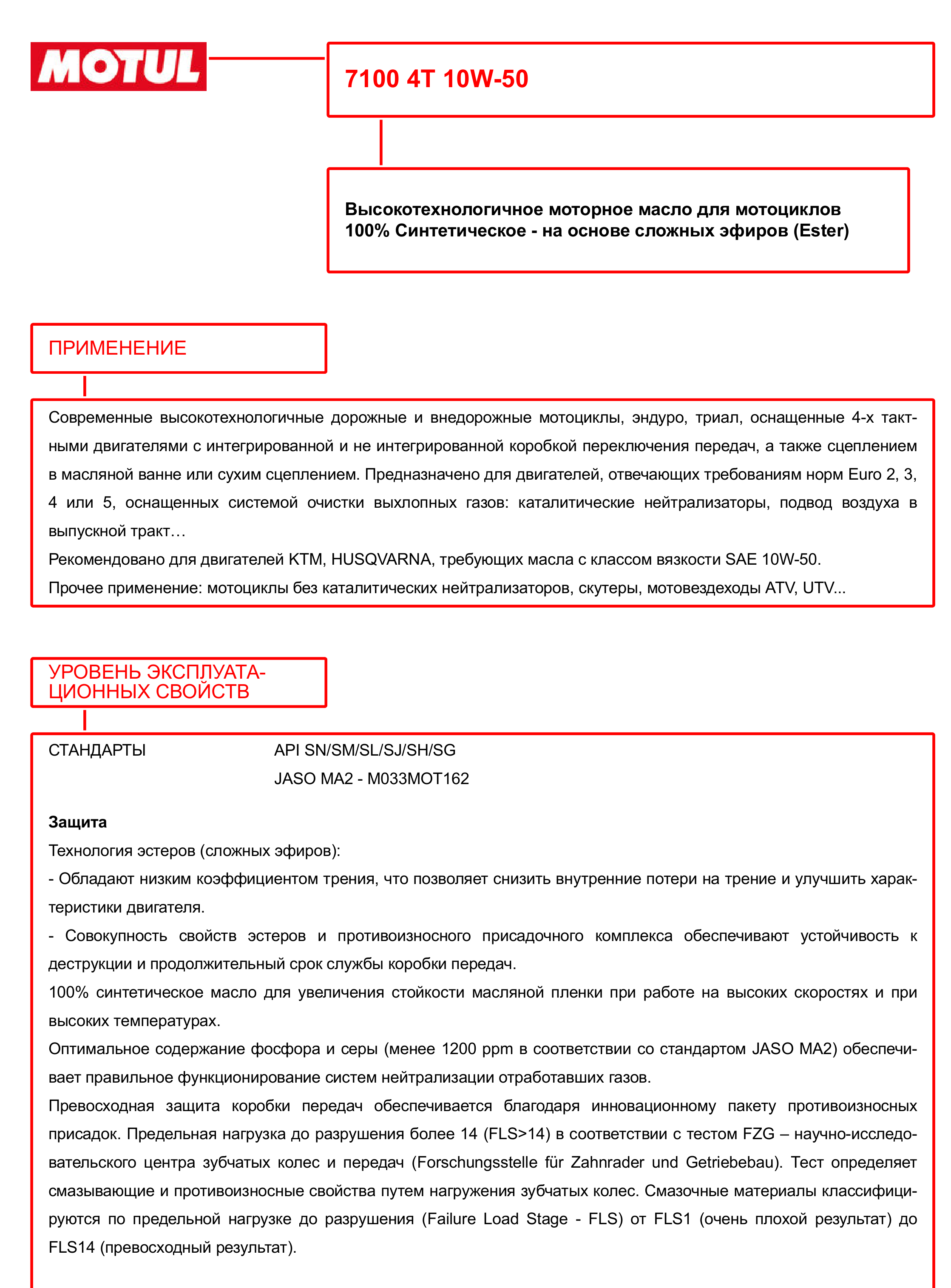 Моторное масло Motul 7100 4T 10W-50 для мотоциклов, синтетическое, 4л (104098) .