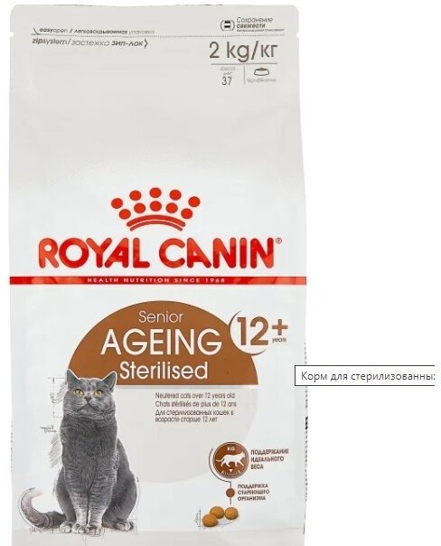 ROYAL CANIN AGEING STERILISED 12+ для пожилых кастрированных котов и стерилизованных кошек старше 12 лет (2 кг)