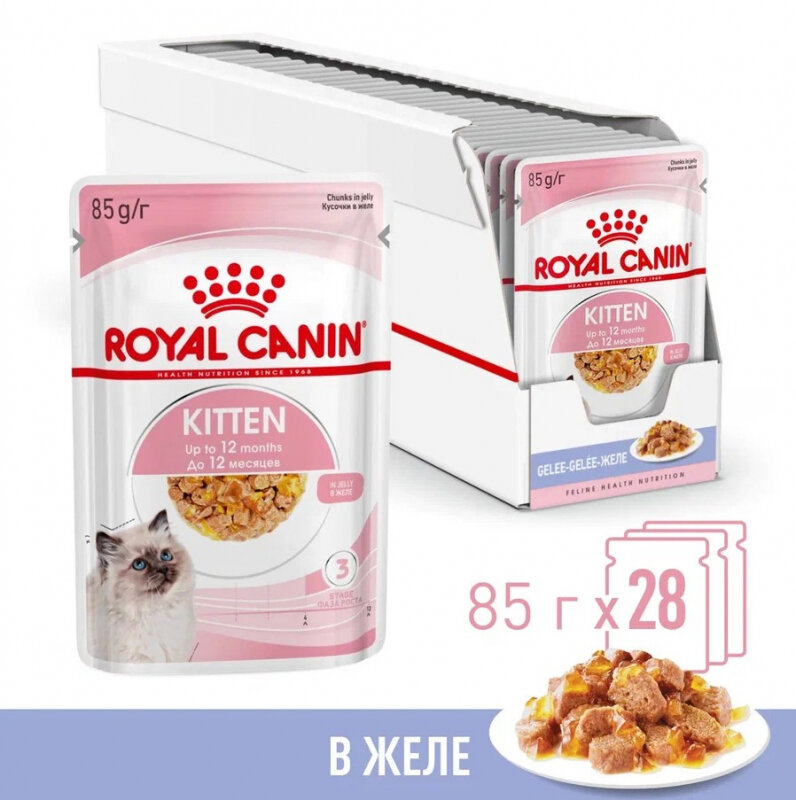 Влажный корм в желе Royal Canin Kitten Jelly (Киттен Желе) для котят до 12 месяцев, 12шт * 0,085 г
