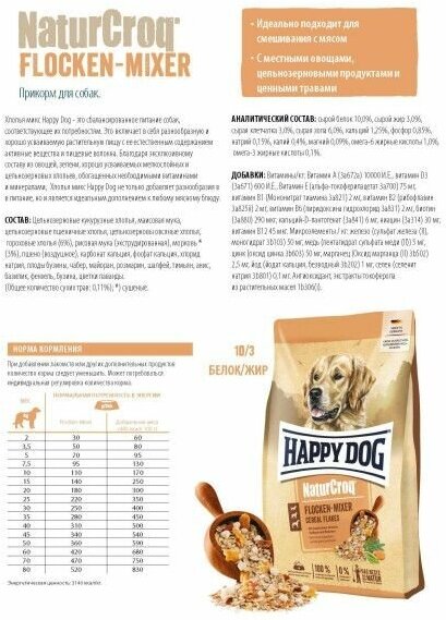 Сухой корм для собак Happy Dog Flakes Flocken Mixer 1 уп. х 1 шт. х 10 кг интересное: