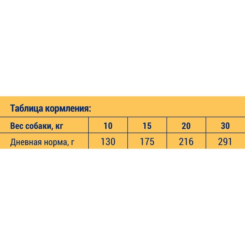 | Дозировка | - вес собаки 10 кг - 112 г - вес собаки 15 кг - 152 г - вес собаки 20 кг - 189 г - вес собаки 25 кг - 223 г |