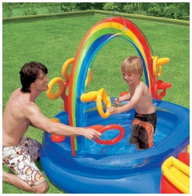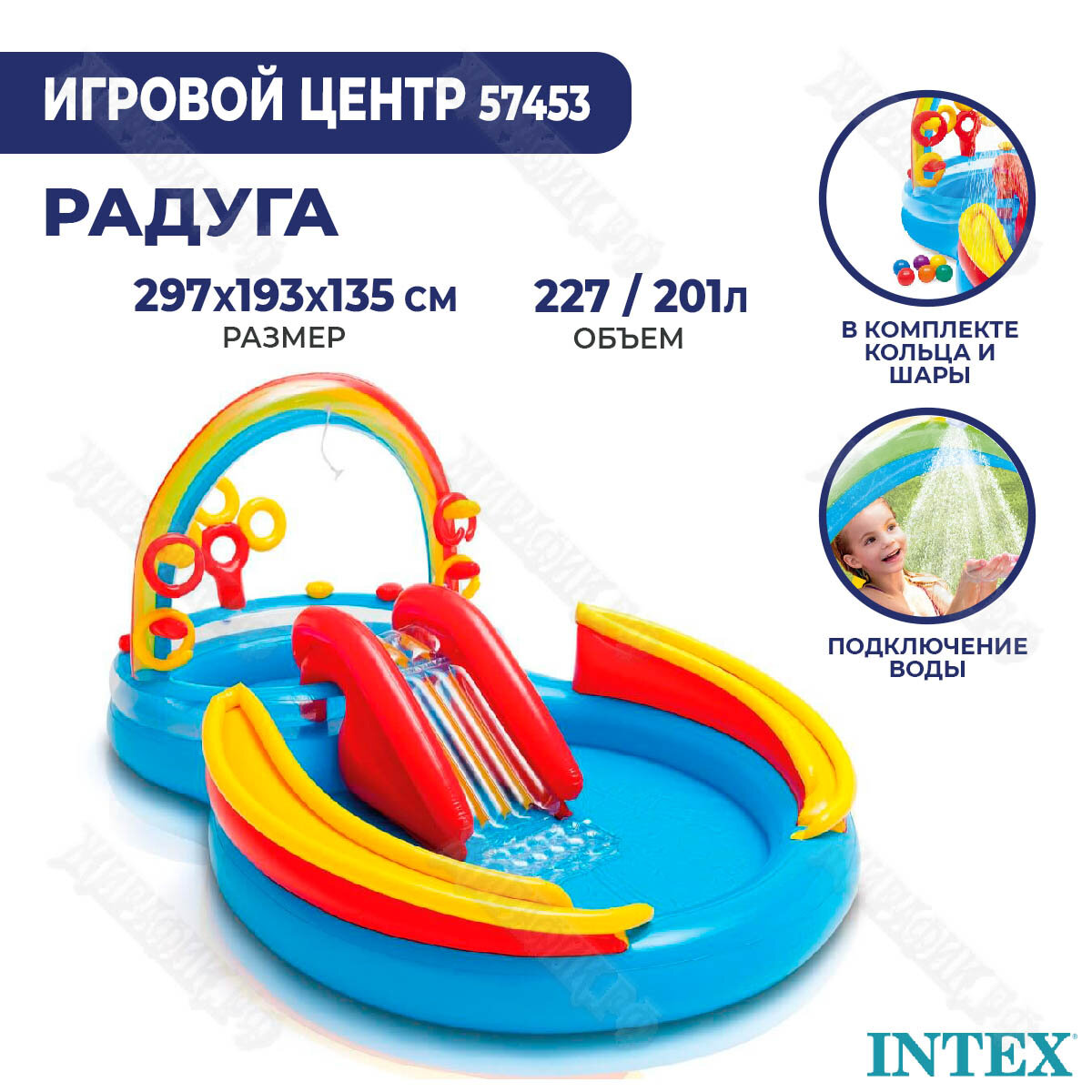 Игровой центр-бассейн INTEX "Радуга", с горкой и распылителем, 297х193х135 см