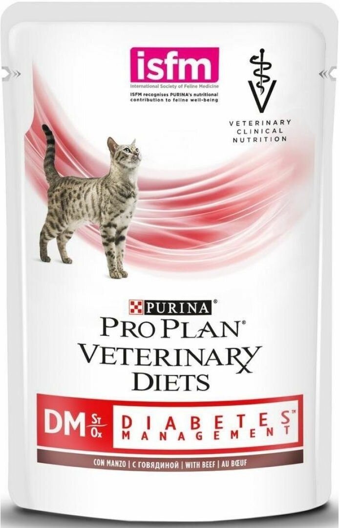 Влажный корм для кошек Purina Pro Plan Veterinary Diets DM St/Ox DIABETES MANAGEMENT, при сахарном диабете, с говядиной, 40 шт. х 85 г