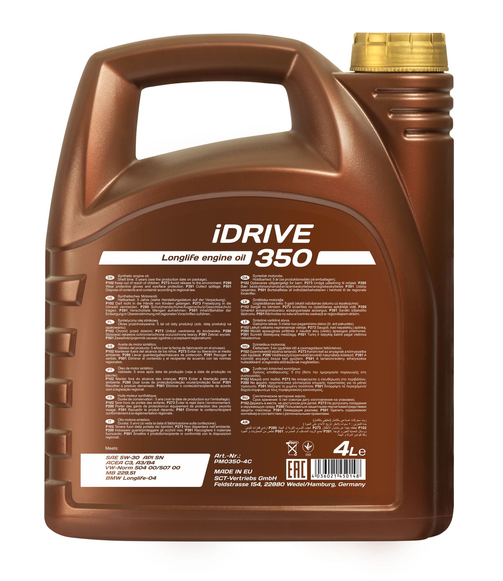 Масло моторное Pemco 350 5w30 синтетическое, API SN, ACEA C3, универсальное, 4л, арт. PM0350-4