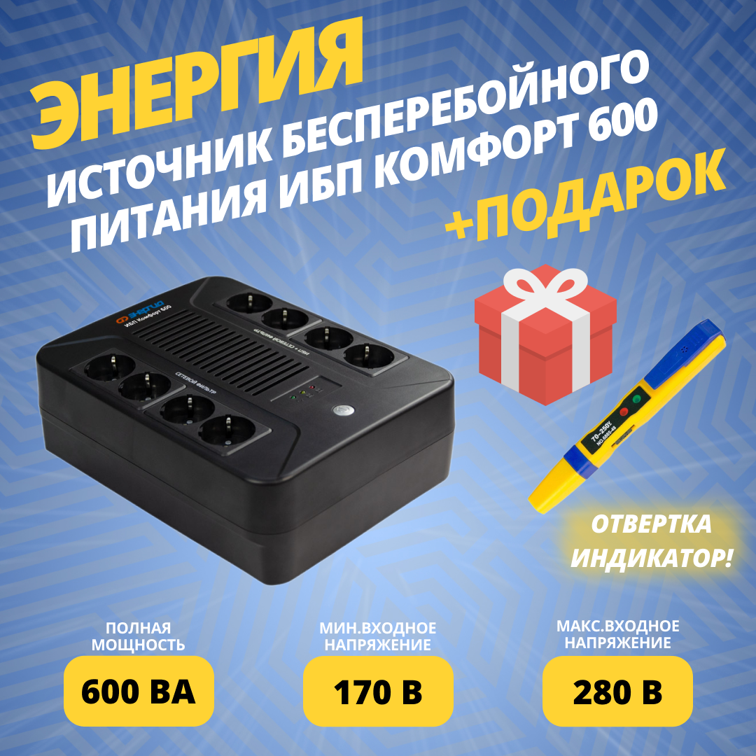 Источник бесперебойного питания Энергия ИБП Комфорт 600 + подарок интересное: