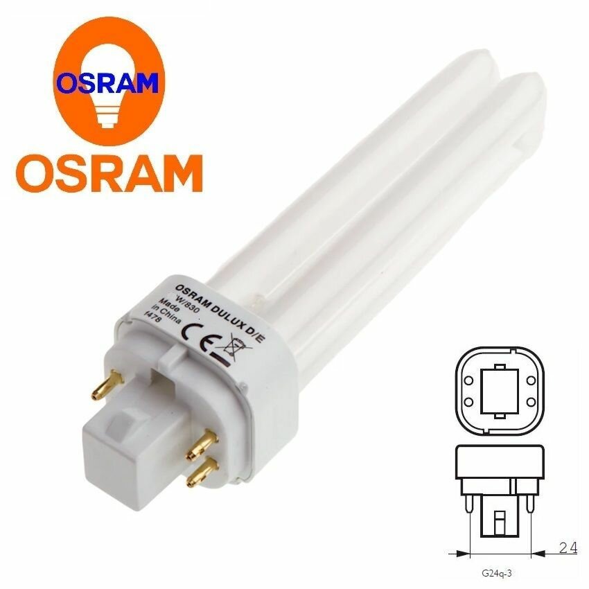 Лампа люминесцентная OSRAM Dulux D/E 830, G24q-3, PD, 26 Вт, 3000 К