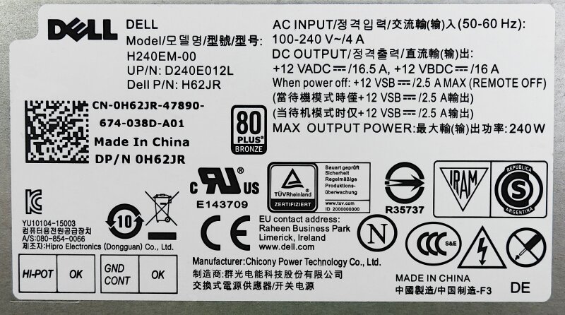Ниже Вы можете прочитать отзывы на Блок Питания Dell H240EM-00 240W, ознакомится с подробными характеристиками, посмотреть интересные обзоры и фотографии на Блок Питания Dell H240EM-00 240W.
