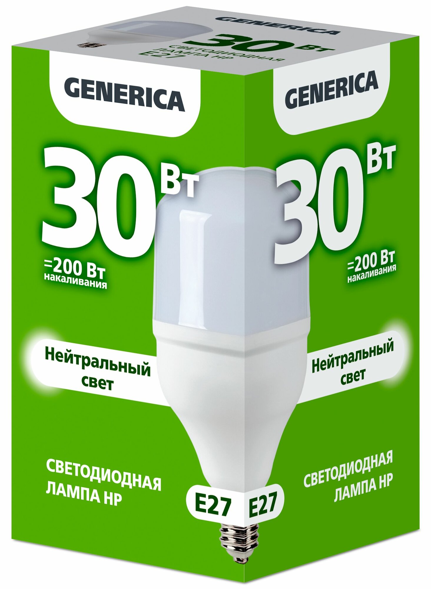 GENERICA Лампа светодиодная GENERICA HP, 30 Вт, 4000 К, E27, 230 В, LL-HP-30-230-40-E27-G