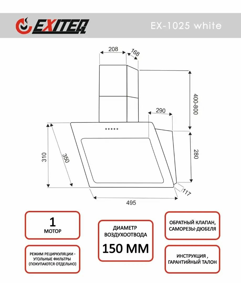 СохранитьНаклонная кухонная вытяжка EXITEQ EX-1025 white интересное: