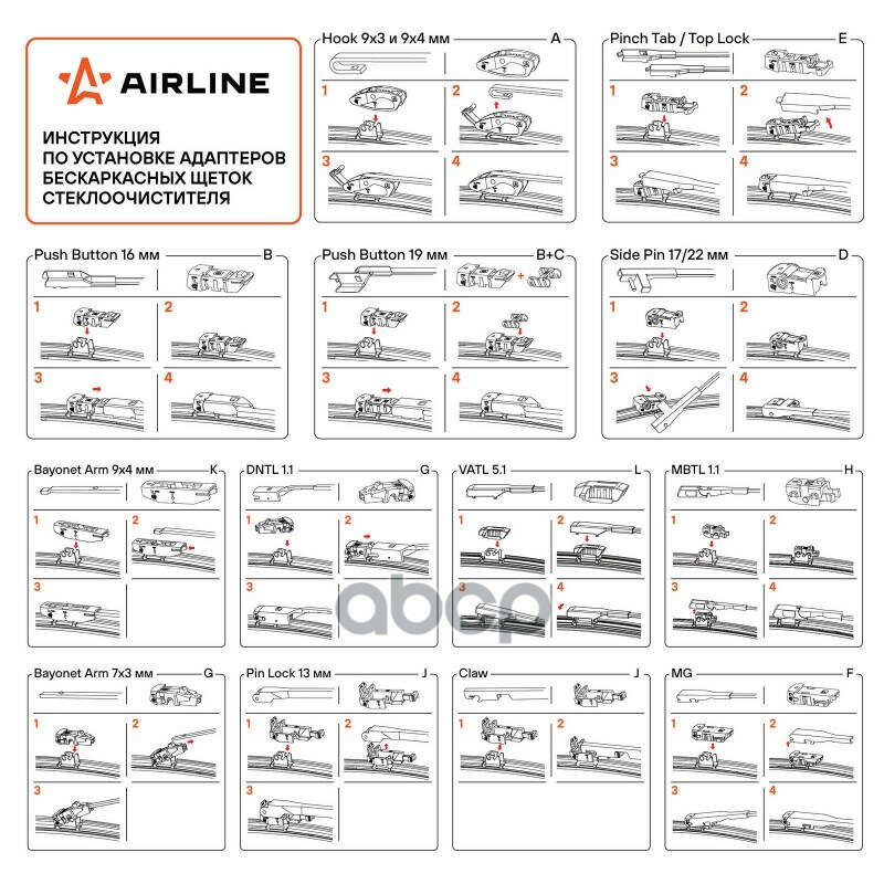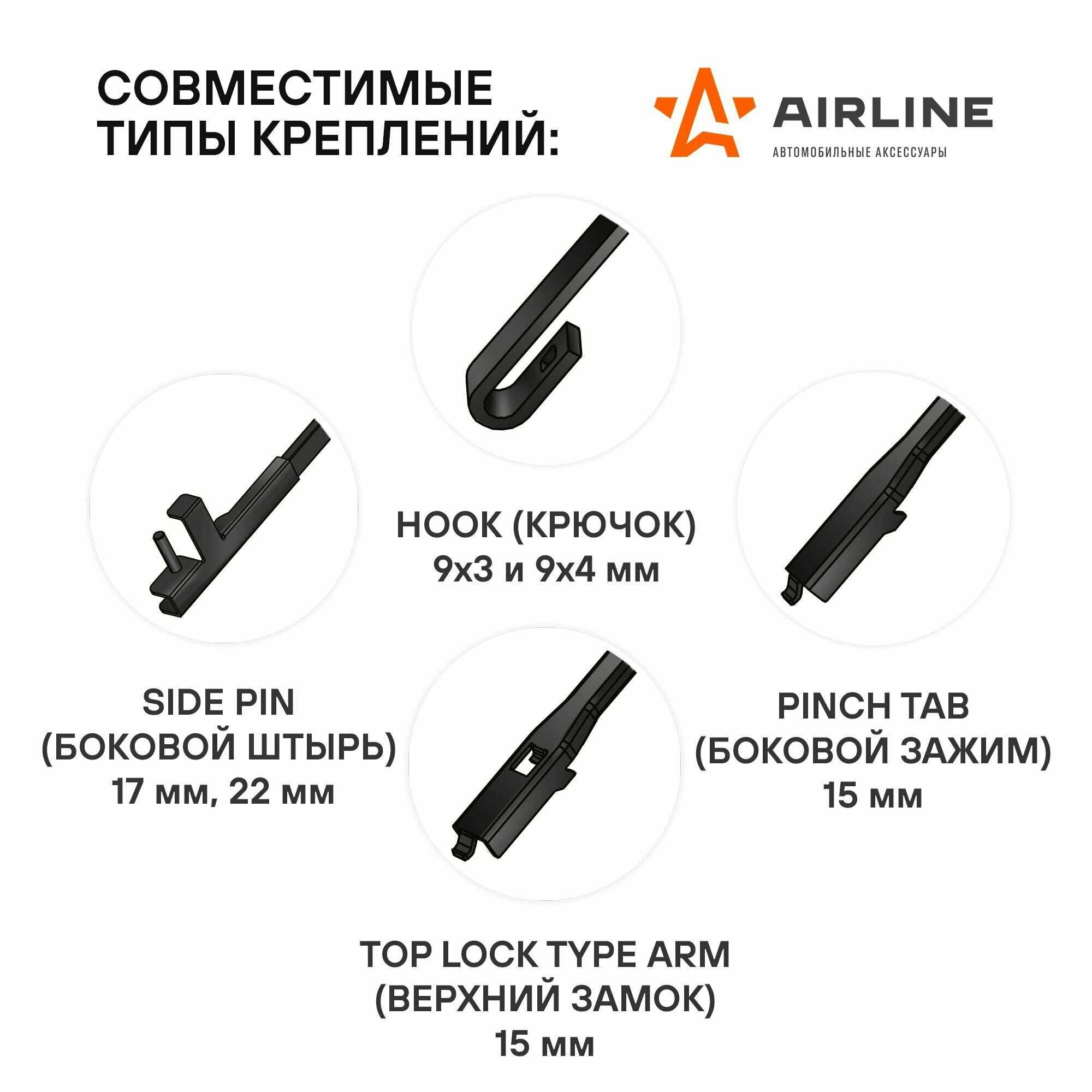 Щетки С/О Airline 700/700Мм (28"/28") Бескаркасные, 2 Шт. 3 Типа Адптр AIRLINE арт. AWB-BK-700-700K