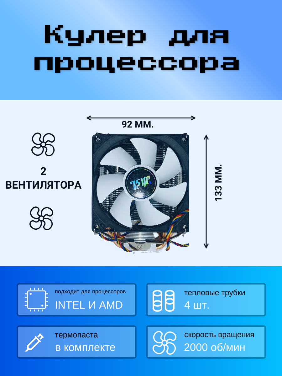 Купить Кулер для процессора: 4 тепловые трубки, 2 вентилятора