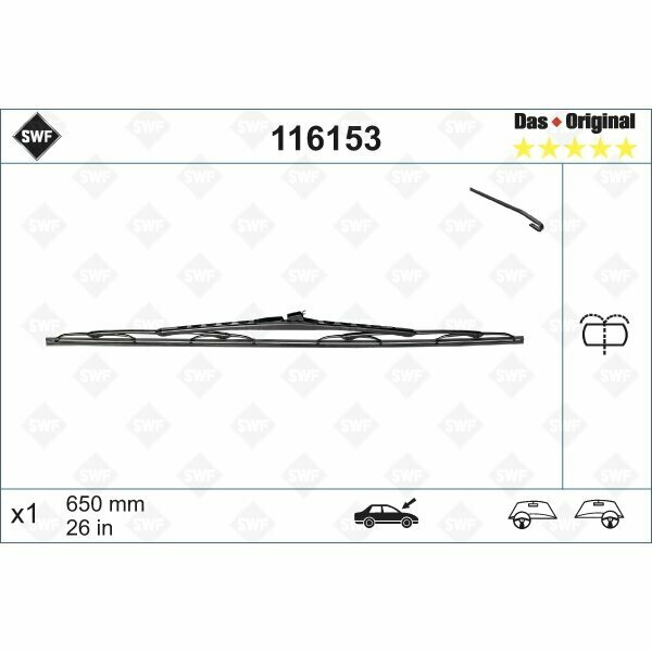 Swf116 153_!Щетка 650/26' Citroen C8, Fiat Ulysse, Peugeot 807, Mb Vito, Renault Espace 96> Swf арт. 116 153