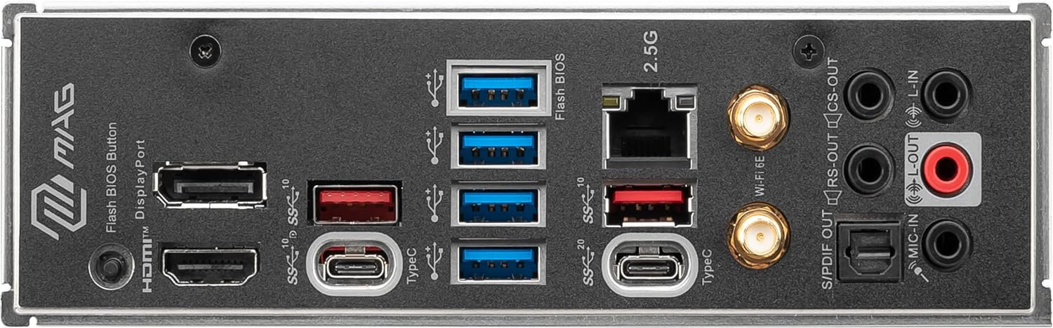 | Разъемы на задней панели | DisplayPort, HDMI, LAN RJ-45, SMA (для антенны Wi-Fi) x 2, USB 3.2 Gen1 Type-A x 4, USB 3.2 Gen2 Type-A x 2, USB 3.2 Gen2 Type-C, USB 3.2 Gen2x2 Type-C, выход S/PDIF оптический |