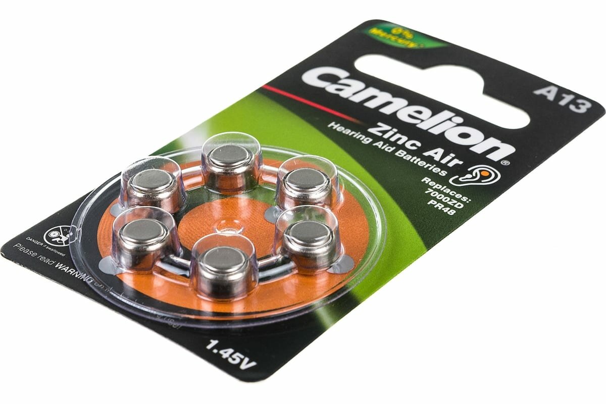 Батарейка цинковая Camelion, A13 (PR48)-6BL, для слуховых аппаратов, 1.45В, блистер, 6 шт. для дома
