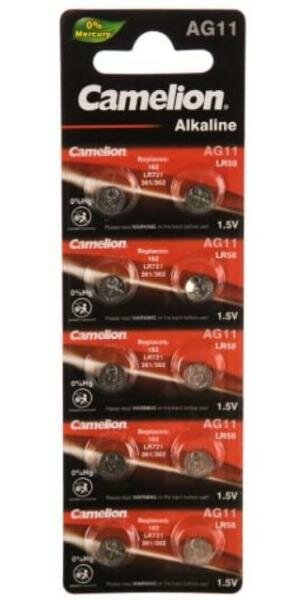 Батарейка дисковая Camelion AG11/Элемент питания Камелион 362/Таблетка для часов алкалиновая Хамелеон LR58(10 шт)