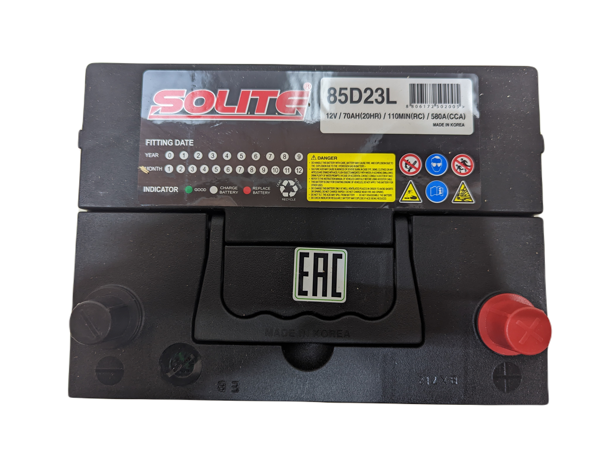 Аккумулятор Solite 85D23L с бортиком (70R 580A 230x170x225)