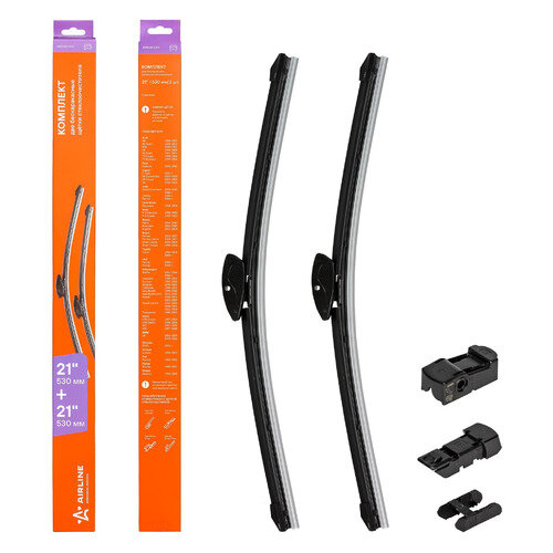 Щетки стеклоочистителя AIRLINE 530530 мм 2121 бескаркасные 2 шт 4 адаптера AWB-BK-530K