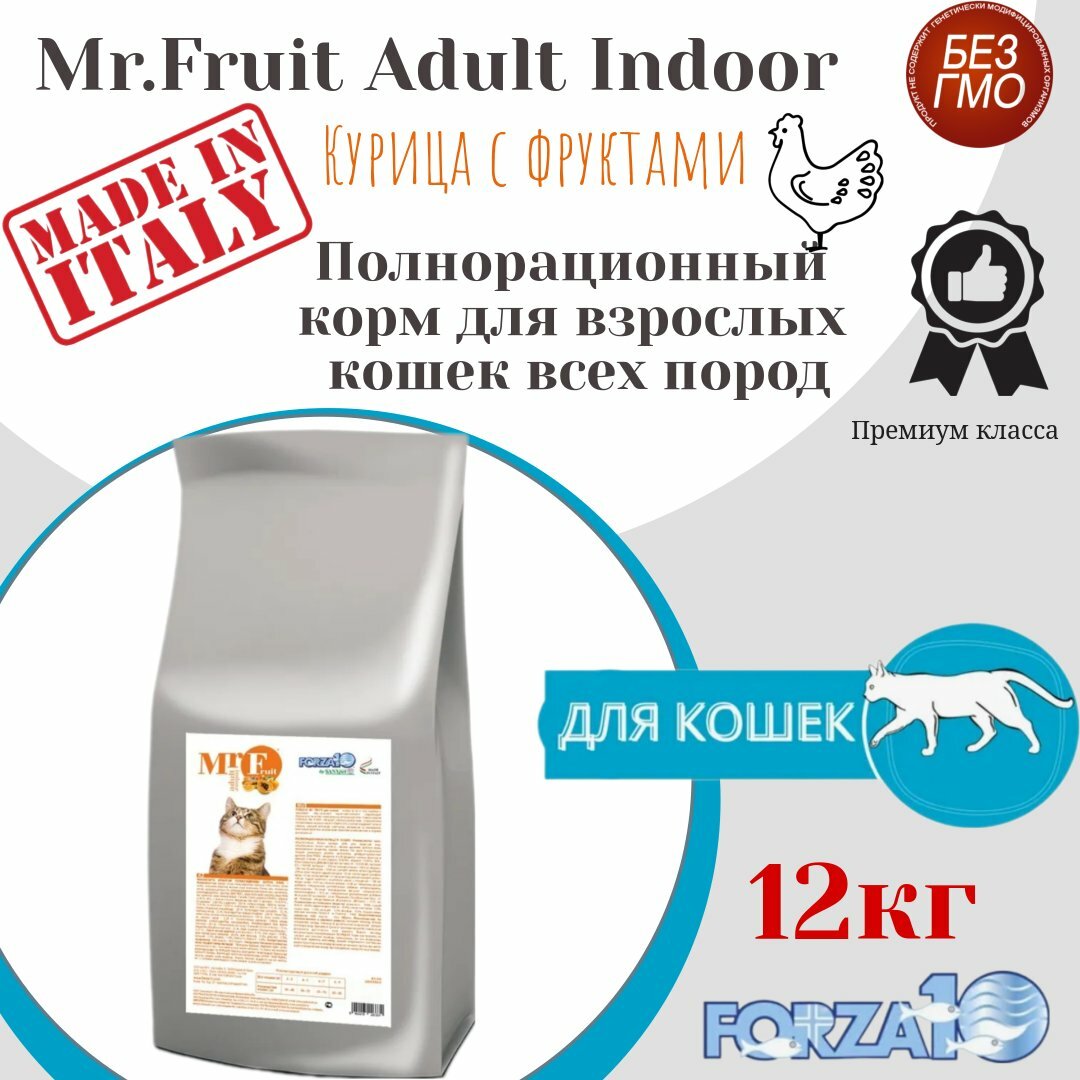 Сухой корм Mr Fruit Forza 10 для взрослых кошек, живущих в помещении 1-6лет 12 кг