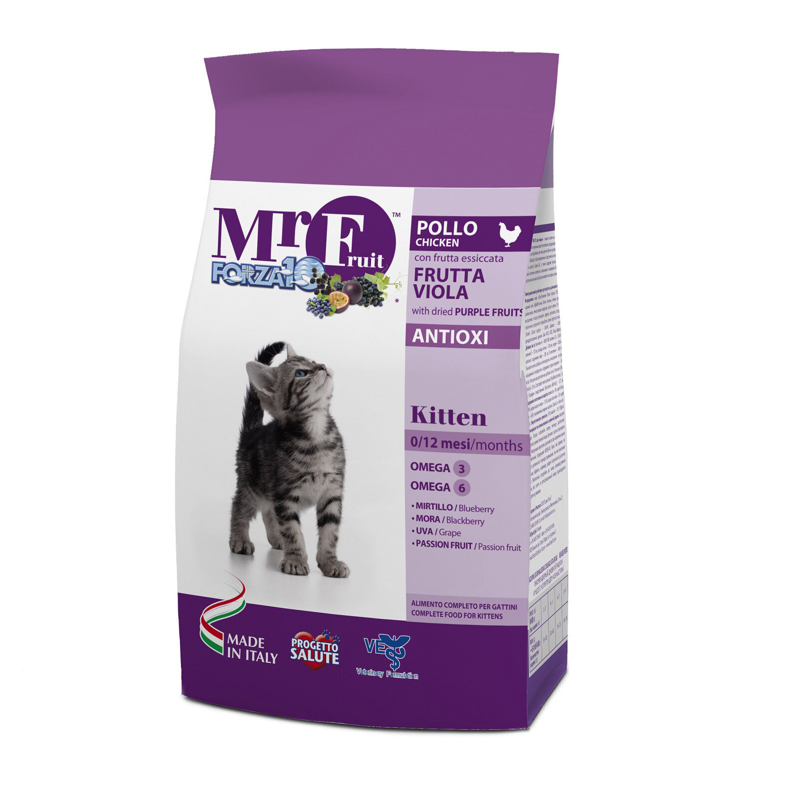 Сухой корм Forza10 Mr. Fruit Kitten Pollo Chicken, для котят с экстрактами фиолетовых фруктов и курицей, 12кг