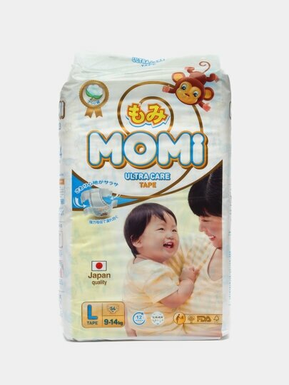 Momi ULTRA CARE японские подгузники детские 9-14 кг, размер 4 L, 54 шт