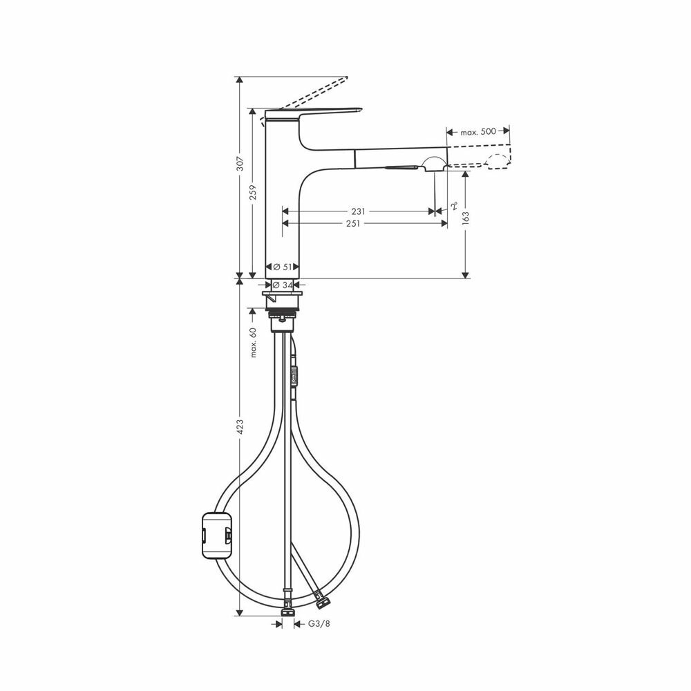 HG Zesis M33 Кухонный смеситель однорычажный, 160 с вытяжным душем, 2jet, sBox lite