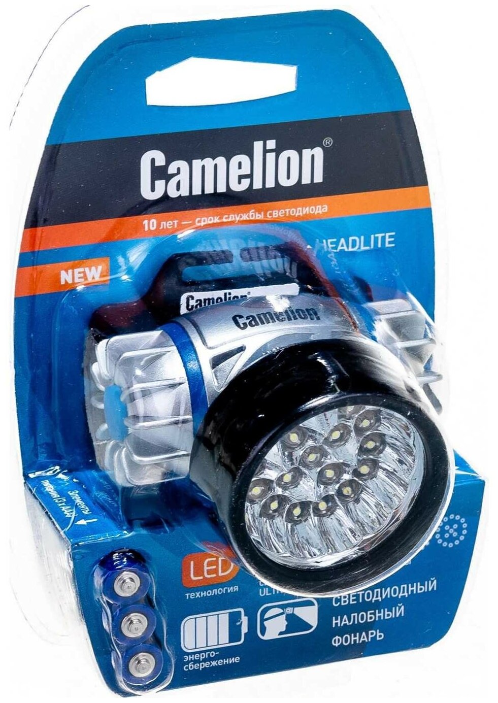 Camelion Фонари LED5323-19Mx фонарь налобн, металлик,19 ультра ярк LED, 4 реж, 3XR03 в компл, пласт, блис