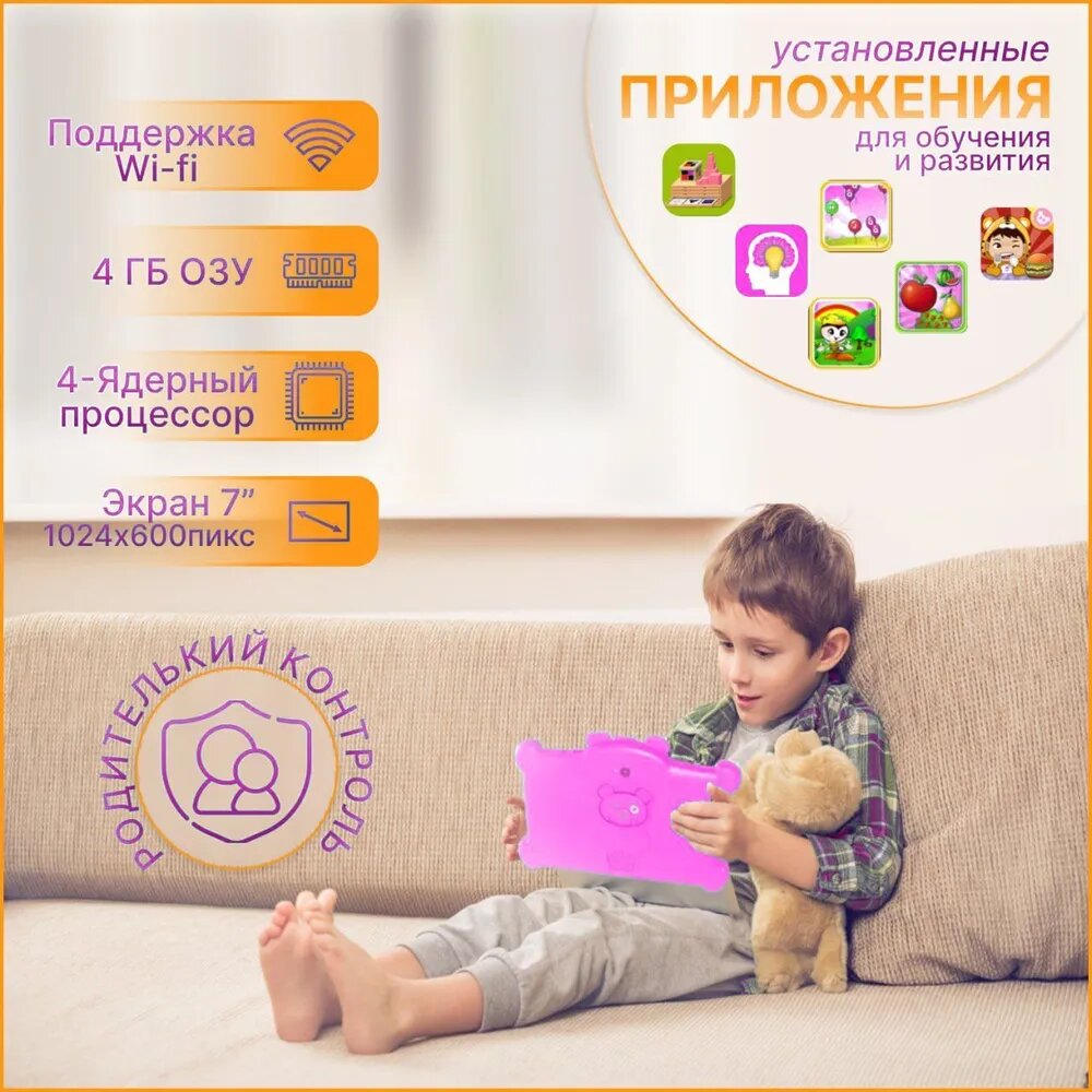 Купить Детский планшет для обучения, игр и развлечений Atouch K96 Kids 4Gb/64Gb/7"1024x600/ Wi-Fi /BT/5Mpix/2Mpix/3000mAh/Розовый
