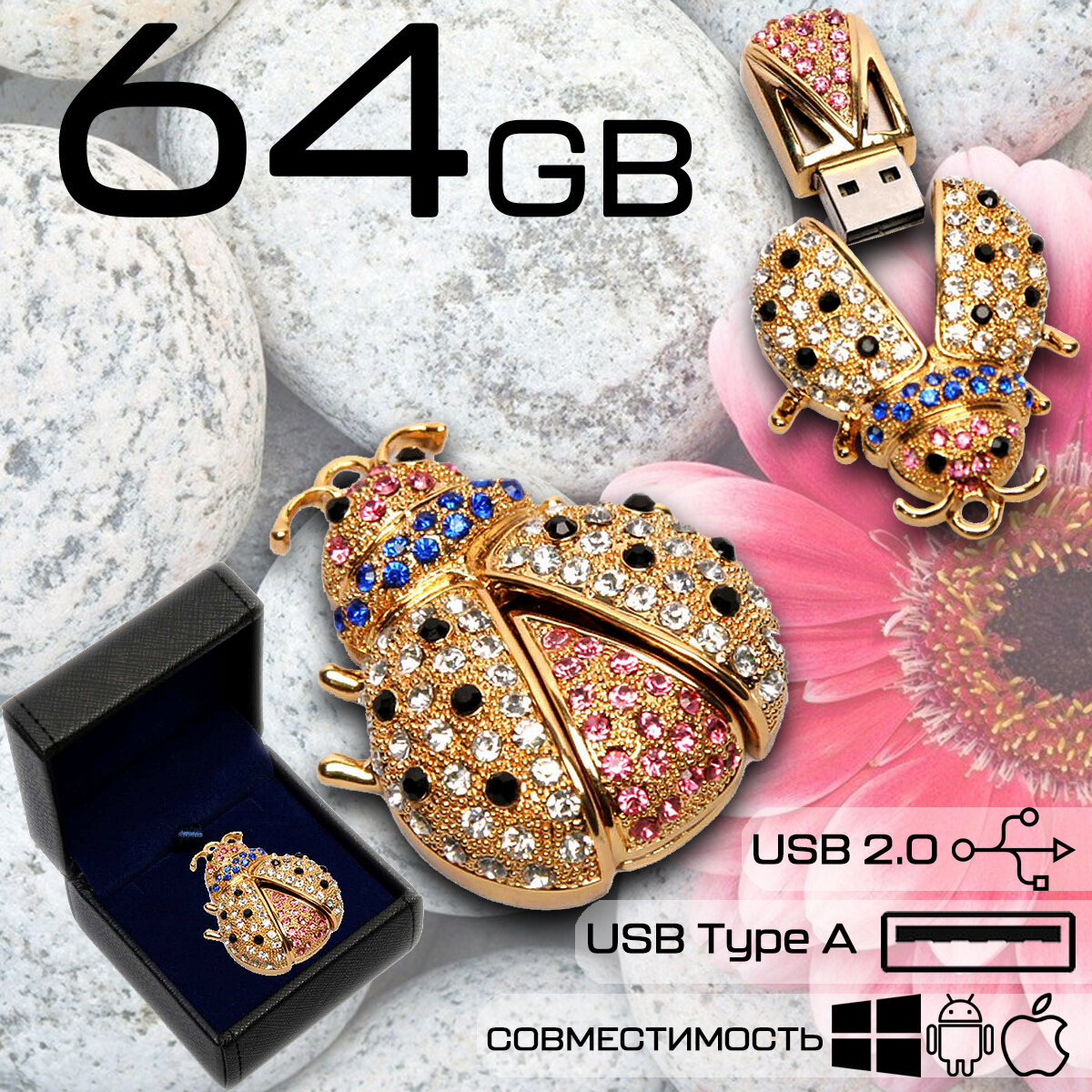 Подарочный набор флешка Жук (64 Гб / GB USB 2.0 Золотой/Gold ZHUK_N8 Подарок на 8 марта дочке от любимого папы с фото) интересное: