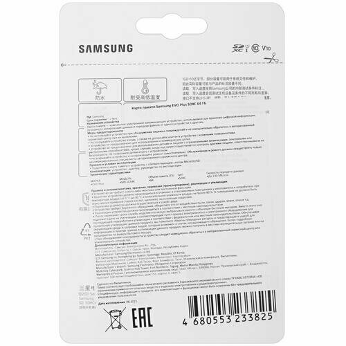 Купить Карта памяти Samsung EVO Plus SDXC 64 ГБ [MB-SC64K/CN]